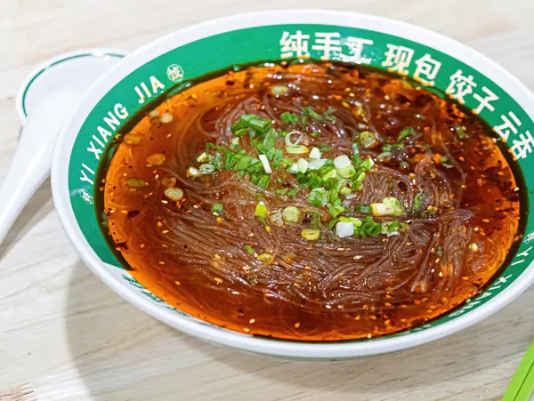 Silky noodles coated in a bold spicy-sour sauce, with special spices and Sichuan peppercorn.